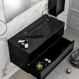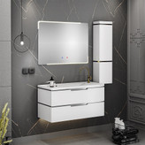 مشخصههاي بارز اين محصولات ضدآب و ضد رطوبت بودن و تنوع رنگي بسيار بالاي آن هاست. يراق آلات اين محصول استيل بوده و در محيط مرطوب زنگ نمي زند.لازم به ذکر است شيرآلات قابل نصب براي اين محصول شير روشويي پایه بلند و شیر آلات توکار دیواری (سفارشی) میباشد.آینه مورد استفاده در این محصول از آینه های نسل جدید بک لایت( چراغ دار ) با تاچ لمسی جهت ایجاد روشنایی آینه و زیبایی بخشیدن به محیط سرویس بهداشتی می باشد . آینه Back Light تلفیقی از نور و آینه میباشدکه باعث زیبایی ست روشویی میشود.آینه در دو نوع لمسی و درجه دار (نمایش دمای محیط و زمان) قابل سفارش میباشد.کابینت این ست دارای دو عدد کشو ریلی آرامبند Slow می باشد.