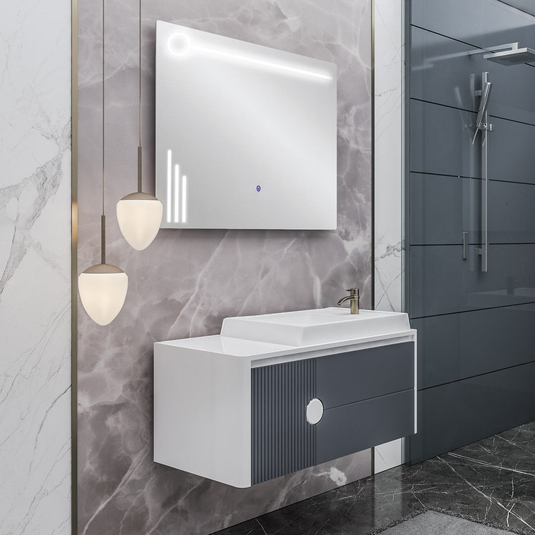 مشخصههاي بارز اين محصولات ضدآب و ضد رطوبت بودن آن هاست. يراق آلات اين محصول استيل بوده و در محيط مرطوب زنگ نمي زند.لازم به ذکر است شيرآلات قابل نصب براي اين محصول شير روشويي پایه بلند و شیر آلات توکار دیواری (سفارشی) میباشد.آینه مورد استفاده در این محصول از آینه های نسل جدید بک لایت( چراغ دار ) با تاچ لمسی جهت ایجاد روشنایی آینه و زیبایی بخشیدن به محیط سرویس بهداشتی می باشد . آینه Back Light تلفیقی از نور و آینه میباشدکه باعث زیبایی ست روشویی میشود.آینه در دو نوع لمسی و درجه دار (نمایش دمای محیط و زمان) قابل سفارش میباشد.کابینت این ست دارای یک عدد کشو ریلی آرامبند Slow و یک عدد کمد که به صورت داشبوردی (جک معکوس) باز و بسته میشود.