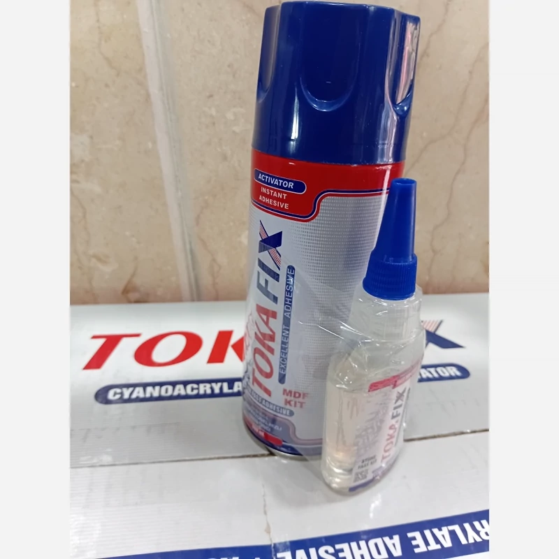 چسبهای 123 توکا فیکس به عنوان یک چسب سریع خشک دو جزئی در بازار عرضه میگردد. چسب 123 توکا فیکس با 100 گرم مایع و 400 میل اسپری فعال کننده تولید و بسته بندی می شود و دارای کیفیت برتر در رده های خود می باشد. چسب 123 توکا فیکس بر پایه سیانو اکریلیت میباشد که از ویسکوزیته بالایی برخوردار است و همراه با یک عدد اسپری خشک کن بسیار قوی ارائه میگردد.