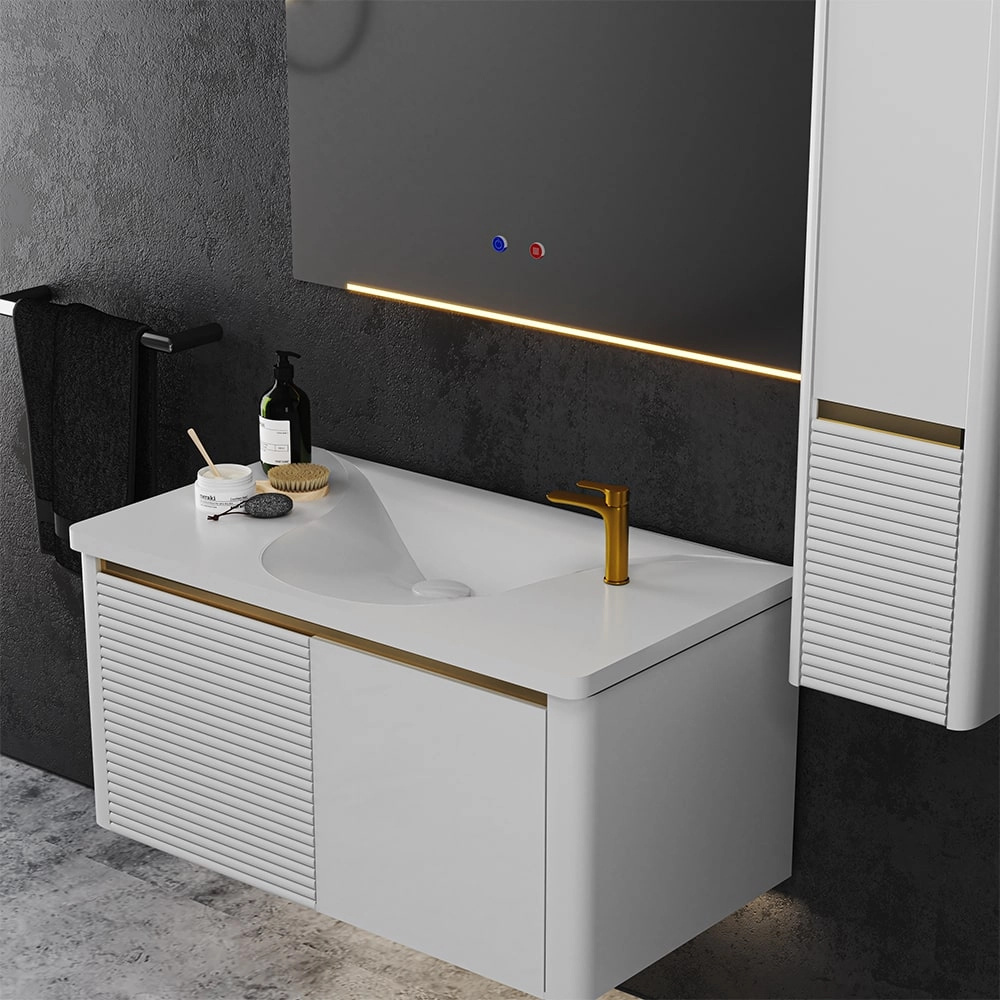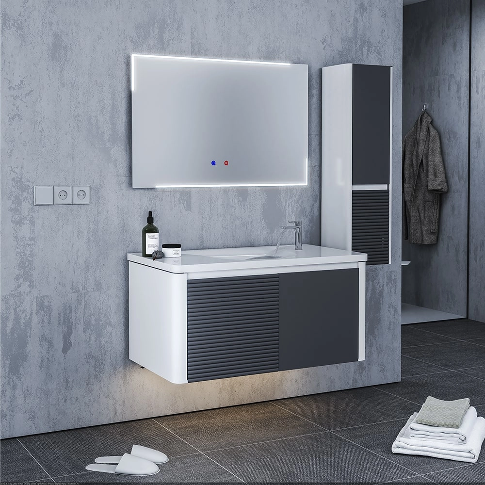 مشخصههاي بارز اين محصولات ضدآب و ضد رطوبت بودن و آنتی باکتریال بودن آن هاست . يراق آلات اين محصول استيل بوده و در محيط مرطوب زنگ نمي زند.لازم به ذکر است شيرآلات قابل نصب براي اين محصول شير روشويي پایه بلند و شیر آلات توکار دیواری (سفارشی) میباشد.آینه مورد استفاده در این محصول از آینه های نسل جدید بک لایت( چراغ دار ) با تاچ لمسی جهت ایجاد روشنایی آینه و زیبایی بخشیدن به محیط سرویس بهداشتی می باشد . آینه Back Light تلفیقی از نور و آینه میباشدکه باعث زیبایی ست روشویی میشود.آینه در دو نوع لمسی و درجه دار (نمایش دمای محیط و زمان) قابل سفارش میباشد.کابینت این ست به صورت پنجره ای آرامبند باز و بسته میشود